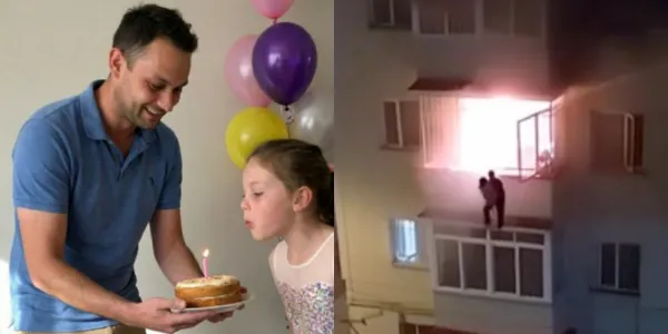 O fogo bloqueou a porta do apartamento. Roberto pegou a Isa no colo, enrolou ela no cobertor e pulou do segundo andar.
